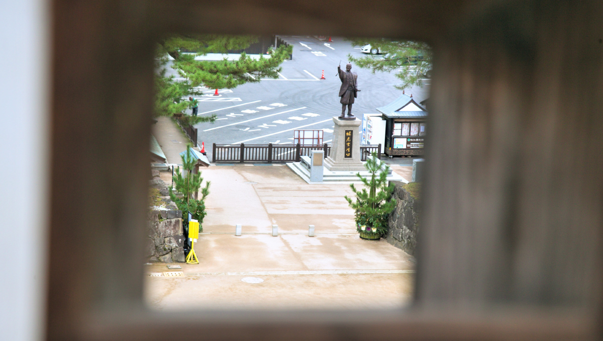 1600年の関ヶ原の戦いの後、堀尾吉晴は息子の忠氏とともに松江城と城下町を築きました。この像は城の入り口に立っています。